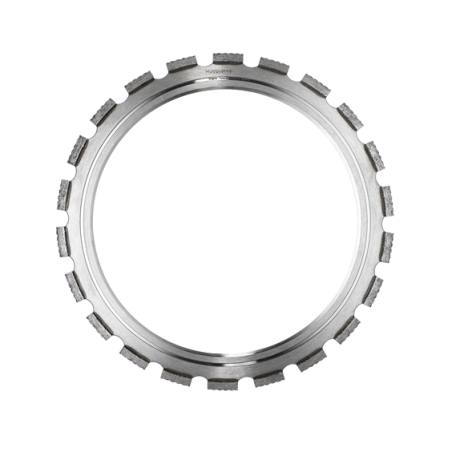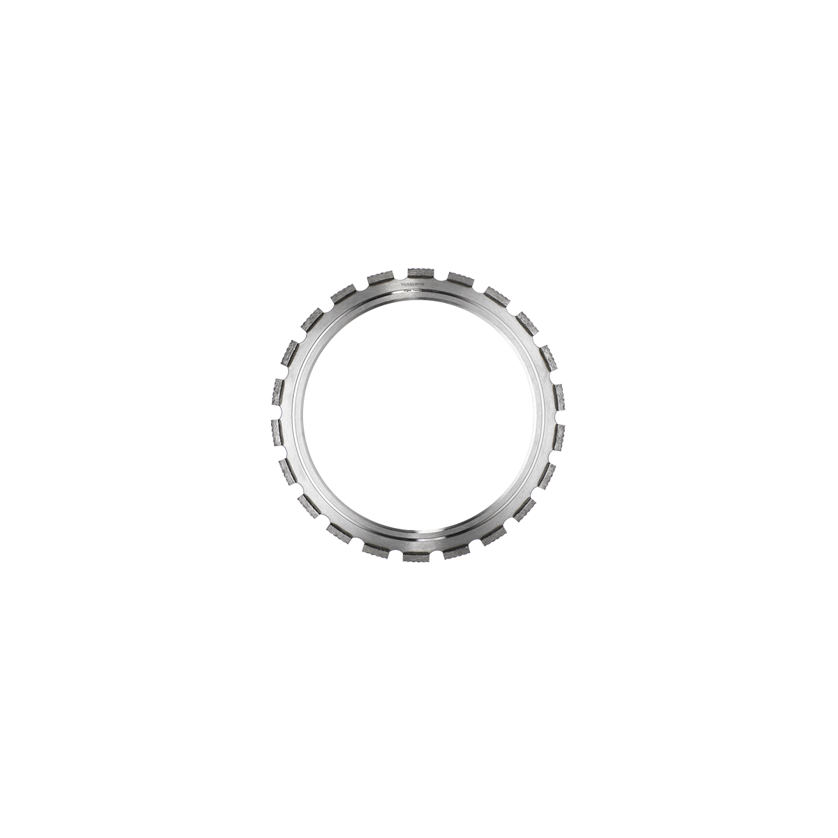 Doskonałe do betonu i twardych materiałów. Przeznaczone do szybkiego cięcia wszelkich materiałów budowlanych, a szczególnie materiałów twardych, takich jak granit i twardy beton. Rolka napędowa w komplecie Do każdej tarczy typu „Ring” dołączona jest rolka napędowa. Samoostrzenie się nowej tarczy Konstrukcja krawędzi segmentu zapewnia dużą prędkość cięcia nową tarczą, niezależnie od obrotów. Opis funkcji Płynny rozruch Konstrukcja segmentu ogranicza powierzchnię styku tarczy z betonem. Umożliwia to szybkie rozpoczęcie cięcia nową tarczą w kontrolowany sposób. Opis funkcji Oryginalna tarcza typu „Ring” Opracowana przez firmę Husqvarna tarcza typu „Ring” (pierścieniowa) i rolka napędowa. Specjalnie skonstruowana tarcza Wyjątkowe cechy, będące wynikiem połączenia segmentów prostych, „turbo” i/lub ochronnych, umożliwiają cięcie szerokiej gamy materiałów przy zachowaniu najwyższej prędkości pracy i największej trwałości. Zastosowania Do cięcia średnio twardego betonu. Betonu utwardzonego, twardego. Betonu utwardzonego o średniej twardości. Betonu zbrojonego, betonu twardego, betonu miękkiego, betonu, granitu, marmuru, kamienia naturalnego, betonu utwardzonego miękkiego, cegły. Specyfikacja techniczna Średnica - 370 mm Konfiguracja tarczy - Segmenty Kształt segmentu - Elite Wysokość segmentu - 9 mm Długość segmentu - 33 mm Szerokość segmentu - 4,2 mm Liczba segmentów - 22 Chłodziwo - Mokro Moc, max. kW - 5 kW Moc, max. KM - 3,5 kW