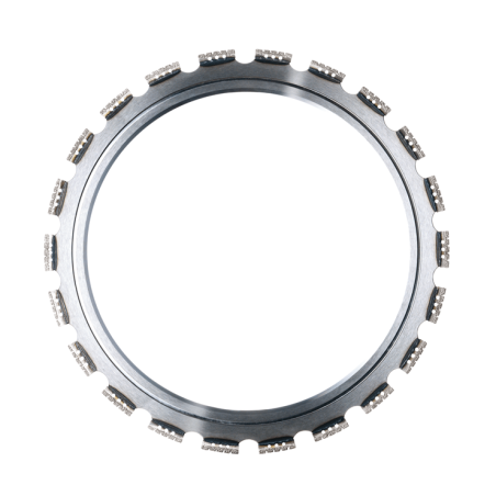 Płynny rozruch Konstrukcja segmentu ogranicza powierzchnię styku tarczy z betonem. Umożliwia to szybkie rozpoczęcie cięcia nową tarczą w kontrolowany sposób. Zastosowania Do żelaza i żeliwa sferoidalnego. Specyfikacja techniczna Średnica - 350 mm Konfiguracja tarczy - Szerokie żłobienia Wysokość segmentu - 2,5 mm Długość segmentu - 40 mm Szerokość segmentu - 4,2 mm Chłodziwo - Na mokro Moc, max. kW - 2,2 kW Moc, max. KM - 3,5 kW