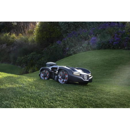 Husqvarna Automower® 435X AWD NERA z technologią bezprzewodową to robot koszący, który charakteryzuje się doskonałą wydajnością pracy na zboczach oraz możliwością poruszania się po nierównym terenie i trawnikach o powierzchni do 3500 m². Napęd na wszystkie koła świetnie radzi sobie ze stromymi zboczami o nachyleniu do 70%, a przegubowy korpus zapewnia znakomitą zwrotność i przyczepność w trudnym terenie i na wąskich przejściach. Instalacja bez użycia przewodów zapewnia pełną elastyczność w precyzyjnym wytyczaniu wirtualnych granic dzięki technologii satelitarnej z wykorzystaniem dołączonej technologii Husqvarna EPOS™.