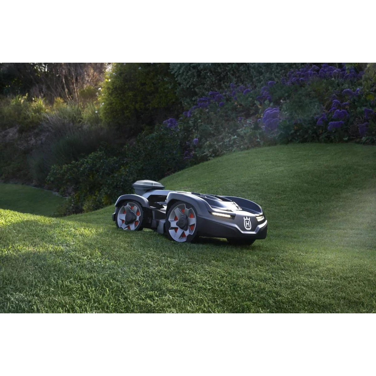 Modele kosiarek Automower® AWD są wyposażone w technologię, która optymalizuje sterowanie każdym kołem w celu zapewnienia doskonałej pracy w najbardziej wymagającym terenie, przy imponującej zdolności pokonywania pochyłości do 70% (35°).