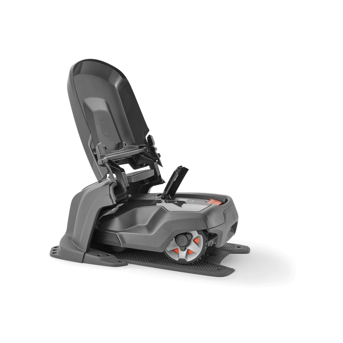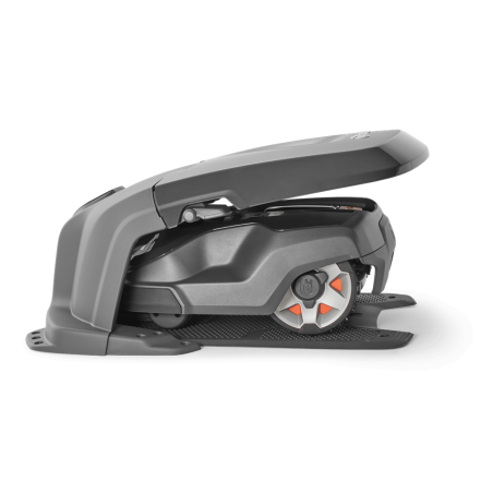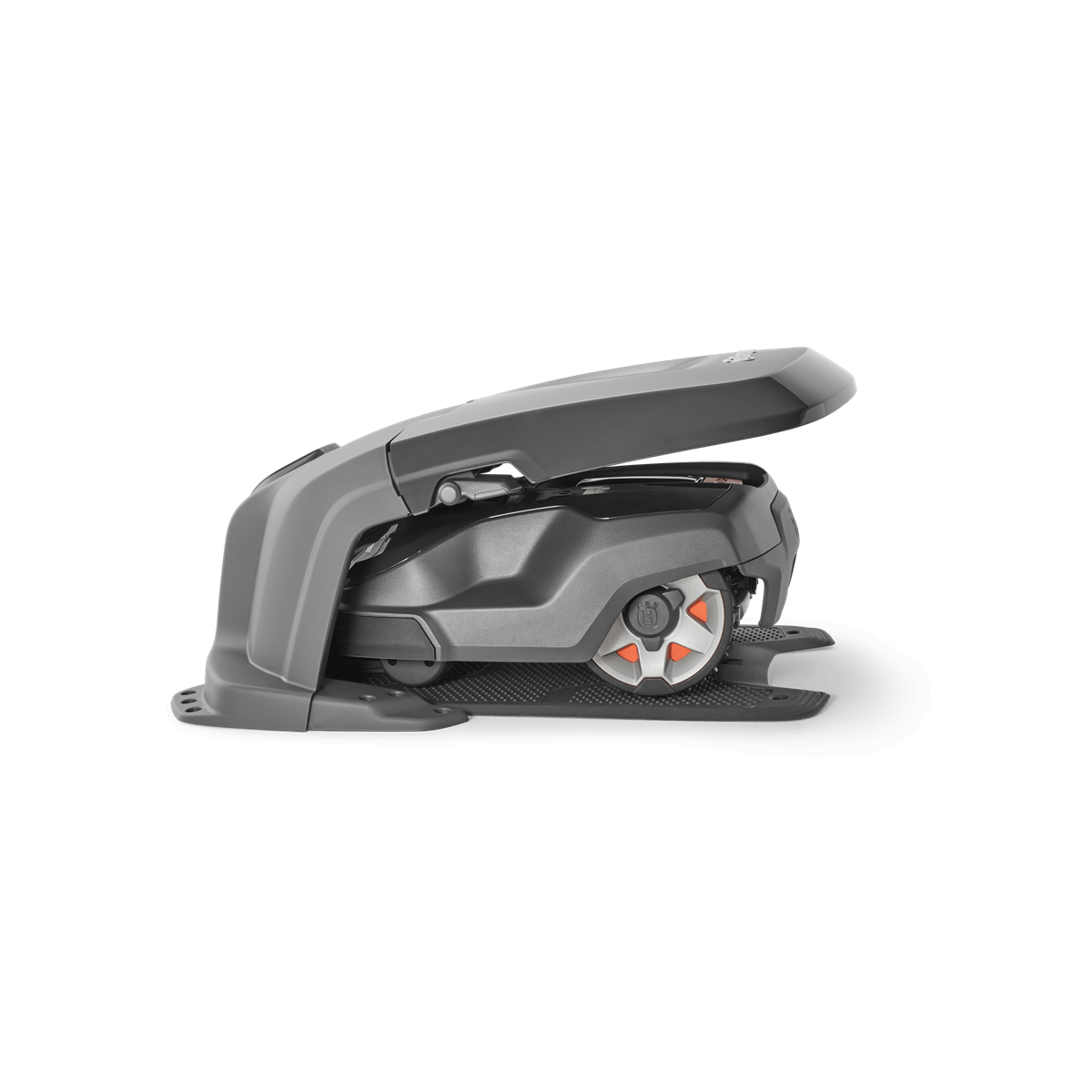 Kosiarka Husqvarna Automower® została zaprojektowana do pracy w każdych warunkach. Aby utrzymać jej elegancki wygląd dopasuj dla niej domek chroniący przed skutkami deszczu i słońca. Dzięki składanej górnej części, klawiatura i wyświetlacz kosiarki są łatwo dostępne podczas ładowania. Do wszystkich przewodów można dostać się poprzez klapkę z tyłu.