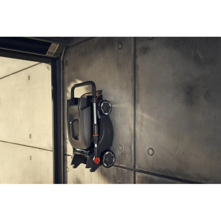 Z łatwością złóż uchwyt, aby zminimalizować przestrzeń do przechowywania i transportu. Przechowuj produkt na ścianie/ szynie lub pionowo na podłodze. Worki na trawę można przechowywać na maszynie.