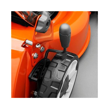 Łatwa i szybka regulacja wysokości koszenia. Jedna dźwignia reguluje ustawienie całego urządzenia.
