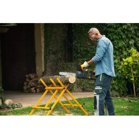 Dzięki mocnemu bezszczotkowemu silnikowi o mocy 1,2 kW oraz wydajnemu niskoprofilowemu łańcuchowi PX pilarka CS 700e z łatwością przecina małe drzewa, gałęzie na małej i średniej wysokości oraz kłody. Jeden akumulator (do nabycia osobno) ePower 48 V pozwala osiągnąć doskonałe efekty bez hałasu, drgań i nieporęczności ciężkich narzędzi spalinowych. Pilarka należy do rodziny urządzeń STIGA z serii 7, więc wszystko w niej podporządkowano bezpieczeństwu i energooszczędności operacji cięcia. Bezwładnościowy układ hamulcowy w razie potrzeby automatycznie załącza się podczas pracy, a miękki tylny uchwyt i lekka konstrukcja dbają o wygodę i stabilność nawet przy wysokich prędkościach.