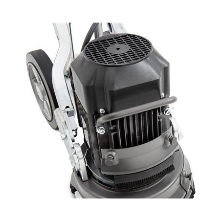 PG 280 to szlifierka jednodyskowa, którą można szybko przystosować do szlifowania krawędzi z obu stron maszyny. Skutecznie szlifuje powłoki z kleju, farby, epoksydu i szpachlówki. Szerokość robocza 280 mm sprawia, że może być używana do mniejszych i średniej wielkości powierzchni betonowych. Skonstruowana jest tak, by ułatwiać pracę w ergonomicznej pozycji, jest przy tym łatwa i wygodna w obsłudze. Maszyna jest lekka i kompaktowa, dlatego łatwo się ją transportuje i składa. Szybkie przejście na szlifowanie krawędzi Łatwe do demontażu pokrywy i możliwość ustawiania kół umożliwiają szybkie dostosowanie maszyny do szlifowania krawędzi po obu stronach. Narzędzia nie są potrzebne. Praca odbywa się w pozycji wyprostowanej. Łatwe usuwanie powłok Skuteczne szlifowanie powłok z kleju, farby, epoksydu i szpachlówki. Łatwość przenoszenia i montażu Maszyna jest lekka i bez trudu zmieści się w każdym samochodzie ze względu na kompaktową budowę, składaną ramę i możliwość rozłożenia na części. Łatwa obsługa Prędkość jest stała, nie wymaga ustawiania. Maszyna wyposażona jest również w prosty w obsłudze, logiczny panel sterowania z zabezpieczeniem przed przeciążeniem. Skuteczne zapobieganie pyleniu Samoregulująca wahliwa osłona ze szczotkowym obrzeżem dostosowuje się do powierzchni, zapewniając szczelność i zapobiegając wydostawaniu się pyłu. Redi Lock® Redi Lock® to szybki i prosty w obsłudze system wymiany narzędzi diamentowych. Mocna konstrukcja zapewnia maksymalną ochronę oraz większą trwałość narzędzi. Wymiana narzędzi przy oszczędności czasu Redi Lock® to szybki i prosty w obsłudze system wymiany narzędzi diamentowych. Licznik motogodzin Możliwość rejestrowania godzin pracy. Ergonomic working position Adjustable and lockable handlebar as well as three-step height adjustment of frame makes the setting of an ergonomic position easy. Keep track of the edge grinding lid When edge grinding park the lid on the motor so you always know where it is. Specyfikacja techniczna Silnik Prąd znamionowy - 13 A Napięcie - 220-240 V Fazy - 1 ph Bolce - 2-pin Częstotliwość - 50 Hz Inne Szerokość szlifowania - 280 mm Średnica dysku szlifującego - 280 mm Minimalna prędkość dysku szlifującego - 0 obr./min Maksymalna prędkość dysku szlifującego - 1410 obr./min Maksymalne ciśnienie szlifowania - 27 kg Kierunek obrotów - One Direction Ilość dysków szlifujących - 1 Wymiary Długość produktu - 1320 mm Szerokość produktu - 420 mm Wysokość produktu - 990 mm Waga - 72 kg