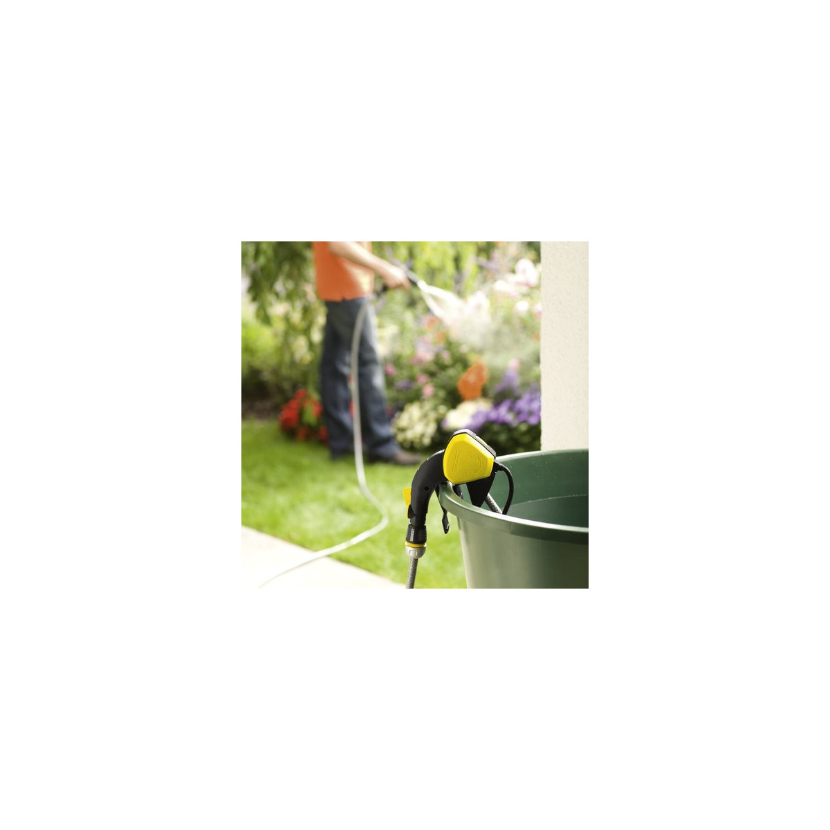 Pompa umożliwia wygodne wykorzystanie wody z beczek. Używając deszczówki do podlewania roślin oszczędzasz drogą wodę wodociągową. Pompę można bezpiecznie zamontować na krawędzi beczki dzięki specjalnej klamrze mocującej. Przełącznik na klamrze mocującej umożliwia bezpośrednie włączanie i wyłączanie pompy w zależności od potrzeb. Zapobiega to konieczności pracy ciągłej obniżając zużycie energii. Filtr chroni wirnik przed zablokowaniem przez obecne w wodzie zanieczyszczenia stałe np. liście czy kamyki. W skład zestawu wchodzą: pompa BP 1 Barrel, pistolet spryskujący 2.645-104.0, wąż PrimoFlex® - złączka uniwersalna 2.645-191.0, złączka z Aqua Stop 2.645-192.0.