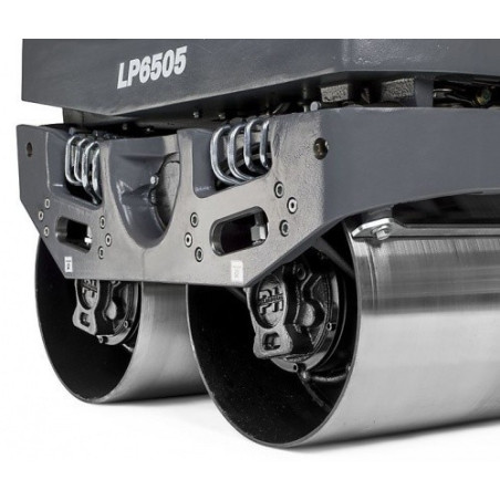 LP 6505 to w pełni hydrauliczny walec dwubębnowy, który opracowano w celu zagęszczania cienkich warstw gleby ziarnistej i asfaltu. Duża siła odśrodkowa i wysoka prędkość zwiększają produktywność, a opływowa, kompaktowa konstrukcja umożliwia łatwą obsługę w ciasnych przestrzeniach. Maszyna jest wyposażona w silnik wysokoprężny Hatz 1D42S, wbudowaną chłodnicę oleju hydraulicznego oraz ergonomiczną, łatwą w serwisowaniu konstrukcję. Praca w dowolnym miejscu Kompaktowa konstrukcja z dużym prześwitem (ponad wysokość krawężnika) po obu stronach, brak wystających elementów oraz opływowe boki umożliwiają pracę w pobliżu ścian, słupków lub krawędzi — można pracować praktycznie w każdym miejscu. Godziny wydajnej pracy Uchwyt tłumiący drgania jest wyposażone w łatwy w obsłudze element sterujący wibrowaniem. Ułatwia to włączanie i wyłączanie funkcji wibrowania, co pozwala na dłuższą pracę. Duża trwałość Wbudowana, hydrauliczna chłodnica oleju ogranicza zużycie i wydłuża okres eksploatacji podzespołów, zwiększając niezawodność w trudnych warunkach i przy wysokiej temperaturze. Wydajny silnik Wydajny silnik wysokoprężny Hatz 1D42S zapewnia niskie zużycie paliwa i niski poziom emisji. Jest również wyposażony w licznik godzin oraz wskaźnik oleju w celu zagwarantowania optymalnej kontroli. Łatwa obsługa Hamulce hydrauliczne z funkcją automatycznego hamowania oferują łatwiejszą obsługę i zwiększone bezpieczeństwo. Specyfikacja techniczna Silnik Model silnika - 1D42S Moc wyjściowa (dane producenta silnika) - 7.0 kW Emisja spalin - (CO2 EU V)993.78 g/kWh Rodzaj paliwa - Diesel Specyfikacja Częstotliwość - 58 Hz Prędkość jazdy - 60 m/min Rozrusznik - Ręczny, linka Wymiary Waga - 745 kg Dzwięk i hałas Maksymalna emisja akustyczna, gwarantowana - 107 dB(A) Ciśnienie akustyczne na słuch operatora - 88 dB(A)