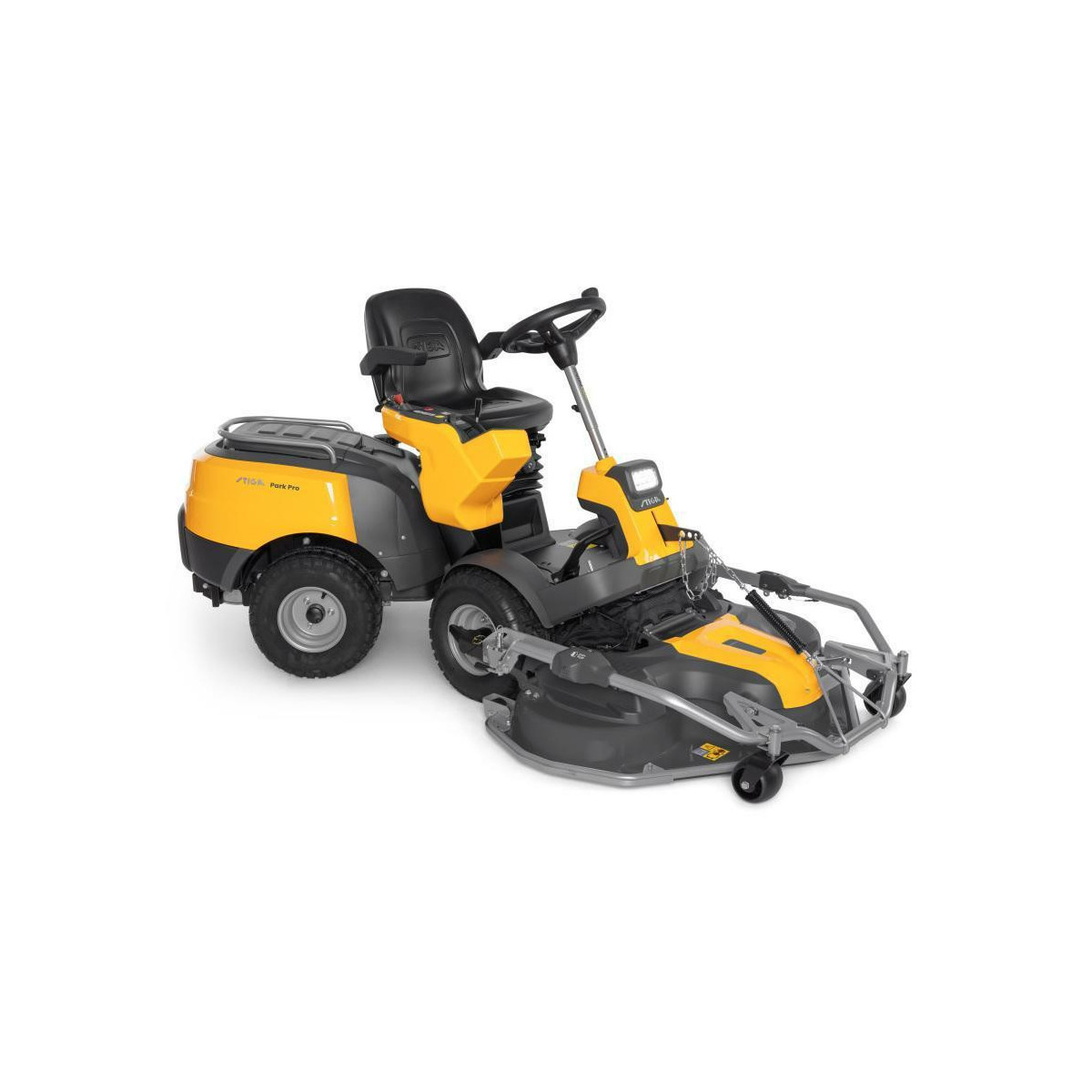 Traktor ogrodowy STIGA Park Pro 900 WX w odróżnieniu od standardowych rozwiązań, jest wyposażony w agregat zakładany z przodu, który nie tylko zapewnia kierowcy wyraźny, nieograniczony widok na planowany tor koszenia, ale także umożliwia koszenie obszarów o utrudnionym dostępie dla standardowych traktorów. Dzięki przegubowemu układowi kierowniczemu w proporcji 50:50, tylna część maszyny dokładnie podąża za przodem.