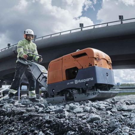 LH 700 to nasza najbardziej wydajna zagęszczarka ręcznie prowadzona. Urządzenie jest w pełni hydrauliczne oraz oferuje moc i wydajność niezbędną do zagęszczania średnich/grubych warstw gleby ziarnistej — począwszy od piasku, aż po materiał skalny. Maszyna jest wyposażona w silnik wysokoprężny Hatz 1D90V z elektrycznym rozrusznikiem, łatwą w serwisowaniu konstrukcją i wytrzymałą ramą ochronną. Łatwe manewrowanie 10-tonowym walcem można sterować za pomocą jednej ręki. Więcej godzin wydajnej pracy Uchwyt ogranicza drgania, co podnosi wydajność pracy. Urządzenie gwarantujące długi czas pracy bez przestojów Hydrauliczna przekładnia zwiększa niezawodność, renomowany silnik Hatz 1D90V obniża koszty eksploatacji, a solidna konstrukcja i wytrzymałe podzespoły zapewniają długi czas pracy bez przestojów. Do najtrudniejszych zadań W pełni hydrauliczne płyty rewersyjne opracowano z myślą o zapewnieniu wydajnej obsługi w najtrudniejszych warunkach. Wytrzymałość i łatwe serwisowanie Rama zabezpieczająca o odpowiednich wymiarach i osłony odporne na uderzenia chronią silnik, przekładnię i odbiornik radiowy, a składana maska zapewnia łatwy dostęp do wszystkich kluczowych części. Specyfikacja techniczna Silnik Moc wyjściowa (dane producenta silnika) - 11 kW Emisja spalin - (CO2 EU V)974.76 g/kWh Rodzaj paliwa - Diesel Specyfikacja Częstotliwość - 56 Hz Prędkość jazdy - 30 m/min Rozrusznik - Elektryczny Wymiary Waga - 780 kg Dzwięk i hałas Maksymalna emisja akustyczna, gwarantowana - 109 dB(A) Ciśnienie akustyczne na słuch operatora - 98 dB(A)