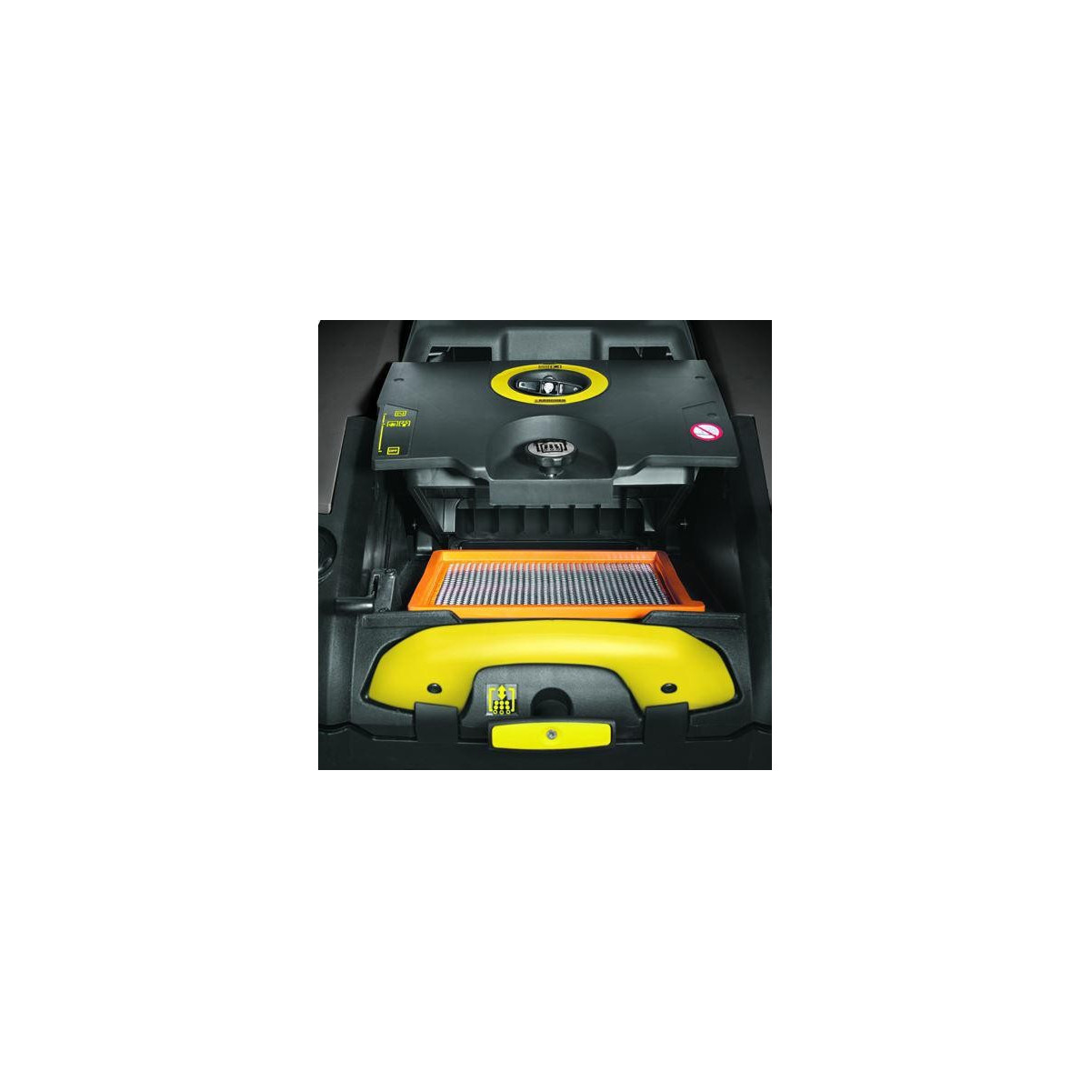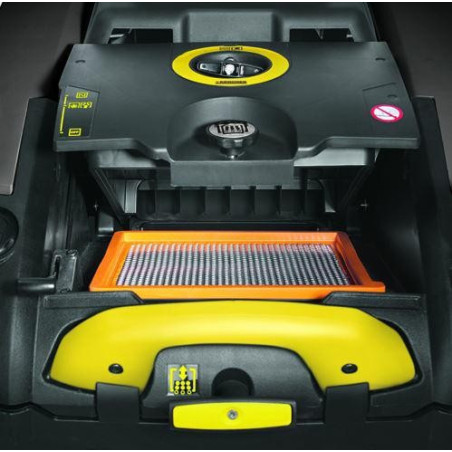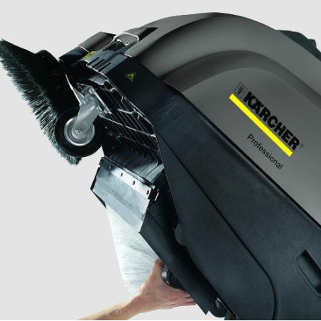 Teleskopowy uchwyt ułatwia wyjmowanie i opróżnianie 40-litrowego zbiornika. Podczas pracy uchwyt jest schowany, tak by nie przeszkadzał w wygodnej obsłudze zamiatarki. Dzięki systemowi clip wymiana filtra i walcowej szczotki głównej odbywa się bez stosowania jakichkolwiek narzędzi i w bardzo krótkim czasie. Powierzchnia filtra 1,8 m² pozwala na długotrwałą pracę, poliester gwarantuje długą żywotność, a efektywne, mechaniczne oczyszczanie zapewnia bezpyłowe zamiatanie.