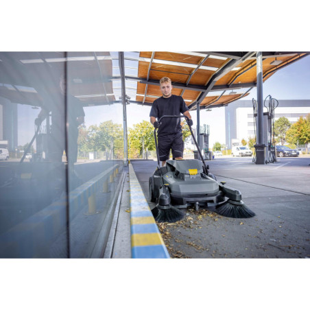 Zamiatarka ręczna KM 70/25 C to skuteczne i wydajne rozwiązanie do czyszczenia twardych powierzchni wewnątrz i na zewnątrz budynków. SZczotka główna i szczotka boczna są zasilane akumulatorowo co znacznie zwiększa komfort pracy. Filtr piankowy z pasywnym zasysaniem redukuje zapylenie i utrzymuje środowisko pracy w czystości. Szczotkę głównąmożna regulować w sześciu stopniach, aby dostosować jej wydajność czyszczenia do różnych powierzchni. Praktyczna półka na dodatkowy sprzęt, taki jak wiadra i chwytaki na śmieci ułatwia pracę. Konserwacja jest również prosta - do wymiany szczotki bocznej i filtra nie są potrzebne żadne narzędzia. Platforma bateryjna 36 V Kärcher Battery Power zapewnia wystarczającą moc w każdej sytuacji.